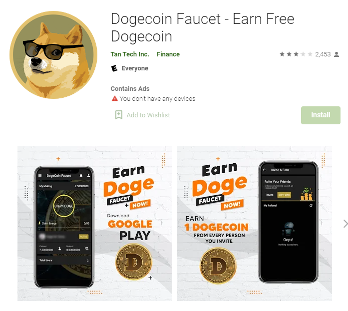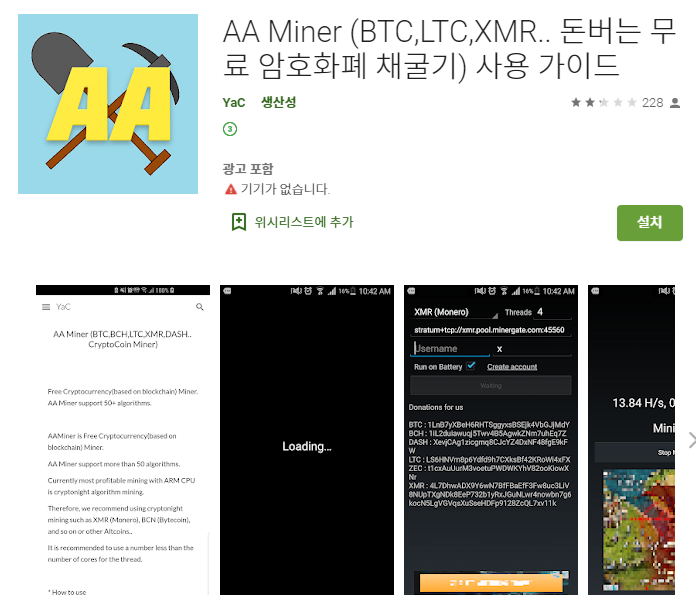 DogeCoin Faucet은 도지코인 전용 채굴 어플이고 AA Miner는 여러 알트코인이 채굴