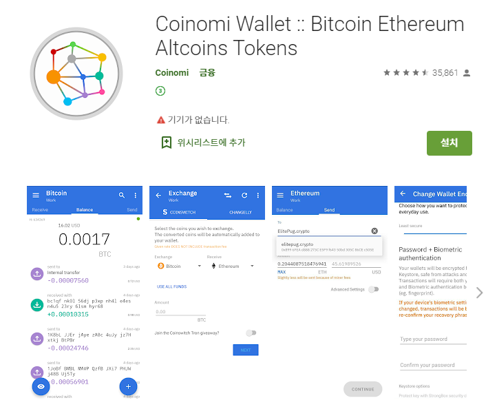 대표적인 월렛은 다음과 같습니다. 둘 중 하나 골라서 스마트폰에 설치해 주세요.