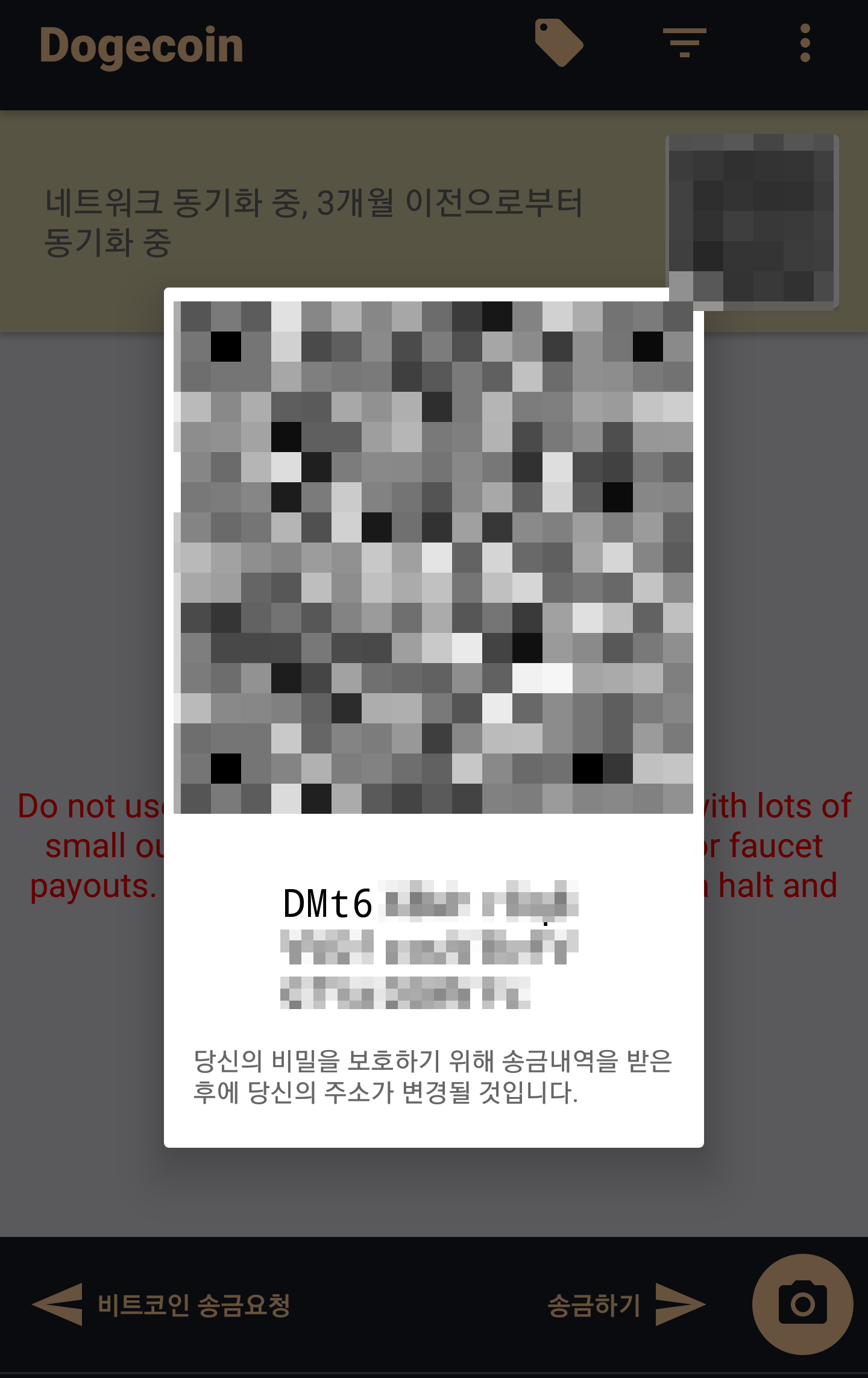 해당 URL을 우리가 사용하는 월렛에 입력하여 도지코인을 전송하면 끝입니다.